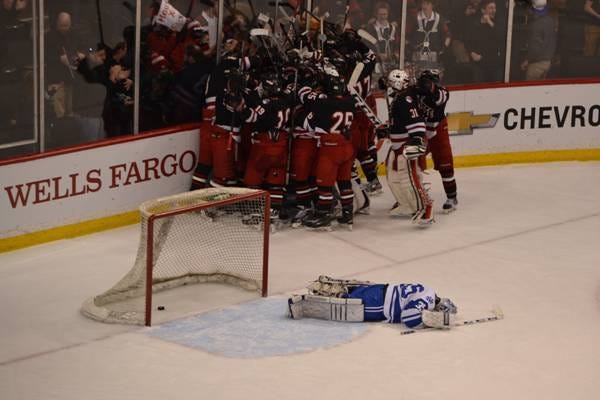 The top seed had fallen and it was an upset not many saw coming. Both teams had filed off the ice, the officials were gone, the arena was emptying, but one player remained.